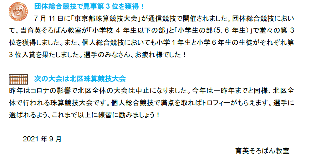 2021年9月:おたより